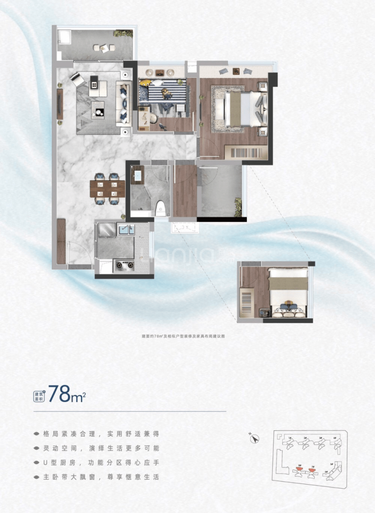 💯 建面约78m² 2+1户型