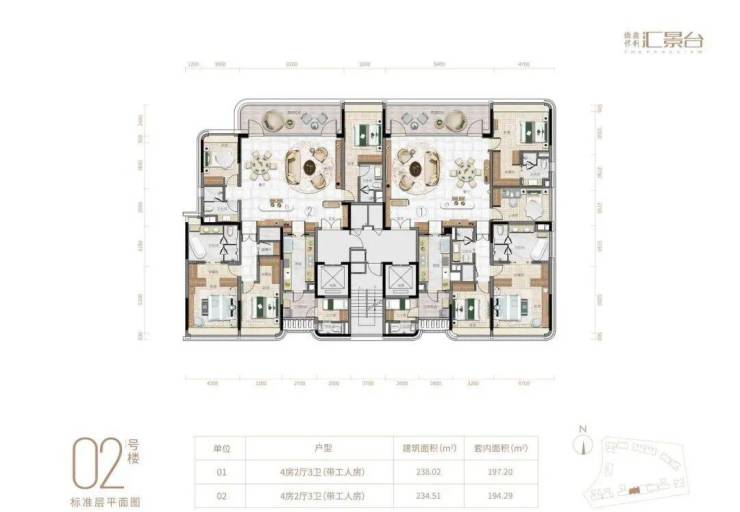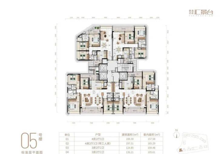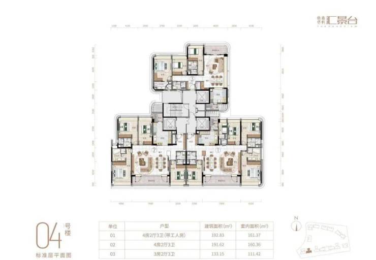 侨鑫保利汇景台坐落于广州天河城央汇景新城东北区,龙熹山正北面,占地约64640㎡,总建筑面积约94051㎡,容积率仅1.94,绿化率35%,总户数410户,车位配比1:1.25。作为汇景新城最后一期豪宅项目,由侨鑫集团操盘最高规格产品、保利负责建筑施工,2022年2月开盘、2024年12月交楼。项目由14栋12层小高层组成,在售户型124~290㎡,主力三至五房,实用率约82-84%,层高3.15米(部分户型因恒适系统调整为2.7米)。物业由国家一级资质方直心生活管理,物业费15.63元/㎡/月(含9.63元管理费+6元恒适系统运营费)。项目以“世界先进生活方式与中国优秀文化融合”为理念,打造广州首个恒适系统科技健康豪宅,引入六恒科技(恒温、恒湿、恒静、恒净、恒氧、恒智),将健康居住体验推向全新高度,真正实现“要做就做到最好”的侨鑫匠心标准。