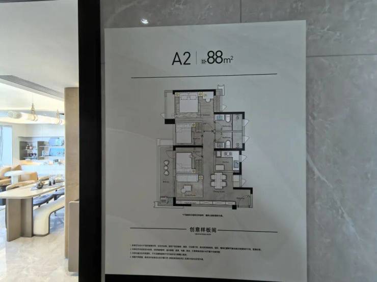 最小面积的建面约88㎡户型有两种,都做到了三房带主套,今天新开样板间的是A2户型。