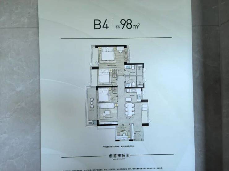 98㎡的另一个户型,则是将四间卧室和客厅都做到了同一侧。