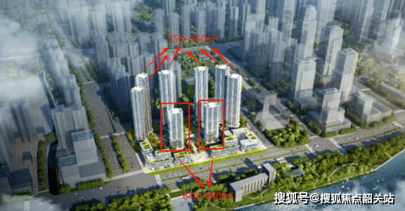 后排4栋超高层:侧望江景,面积段覆盖204-350㎡,其中250㎡户型套内面积可达350㎡,LDKG一体化厅堂设计,阳台占比30%,空间通透感极强。