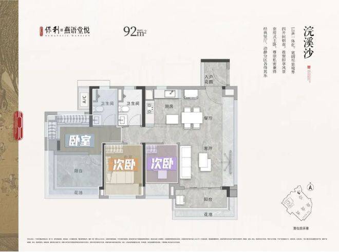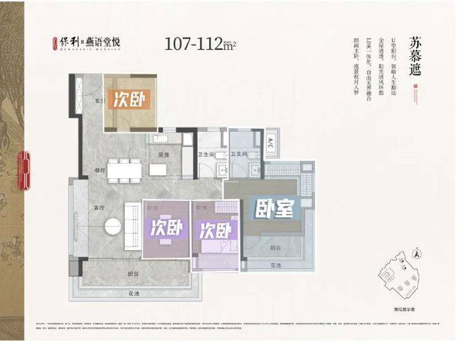 户型设计亮点多,且使用率超 100%。如 90 - 94 平 3 房 2 卫,满足周边两房置换客需求,上车难度不大;最大 125 平 4 房,控制总价,满足部分家庭改善需求。目前在售 B 区产品优势明显,位于东南侧,楼间距阔绰,涵盖板楼产品,户户采光通透。像 92 平浣溪沙户型,虽小面积但因 A2 栋西南向直面工业大道有噪音,刚需对噪音要求相对不高所以设置在此,且上午采光受 A1 遮挡,高楼层影响小。107 - 112 平苏幕遮户型东南向,上午阳光直射下午无,还避开工业大道噪音。125 平相见欢在 A1 栋西南向,前面遮挡少,又有 B 区规避工业大道影响。整体户型布局合理,充分考虑各方面因素。
