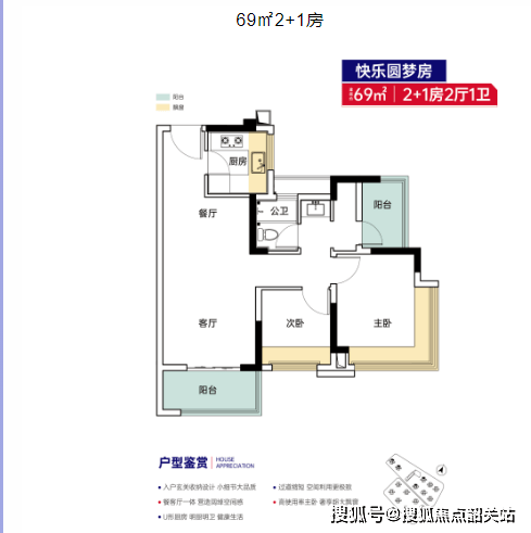 69㎡2+1房,刚需首选小户型,该户型为2+1房设计,超九成使用率,户型格局方正,空间利用率高,没有浪费空间。客厅、餐厅相连,打造开阔的活动空间,方便日常起居与亲友聚会;卧室采光通风极佳,配备飘窗,增加空间层次感与实用性,同时也能让业主享受充足的阳光与优美的视野;灵动空间可根据自身需求改造为书房、儿童房、储物间等,满足业主的个性化居住需求,适合单身贵族或二人世界居住,刚需置业门槛低,性价比极高。