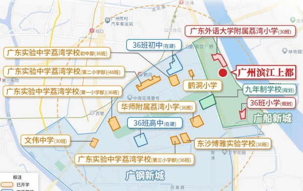 社区内自建 1 所 12 班幼儿园和 1 所 30 班小学,小学为广东外语外贸大学附属荔湾小学,幼儿园是荔湾区青少年宫附属幼儿园(璇湾园)。这两所学校为孩子们提供了良好的启蒙教育和基础教育平台。此外,2 公里范围内还有 18 所优质学校环绕,涵盖 3 所高中、5 所初中、10 所小学,如广东省实验中学、华师附小等,形成了全方位、多层次的教育体系,满足不同年龄段孩子的教育需求。