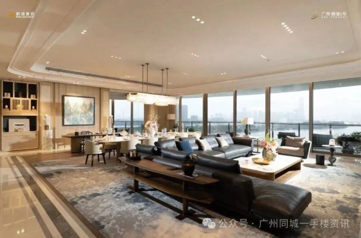 中高区(11-30层):约450㎡、550㎡主力户型。此为项目核心产品,视野豁然开朗,南向珠江、北望金融城繁华城景尽收眼底。客厅常采用挑高或大气横厅设计,连接宽阔环幕阳台,将室内外交融感做到极致。此区间业主可优先尊享深湾会等核心配套。