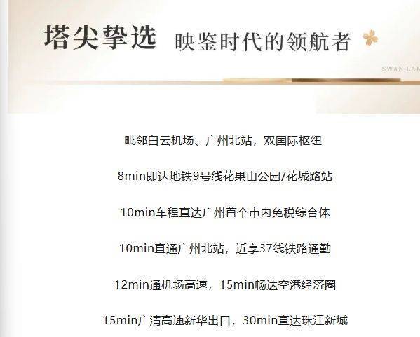 项目毗邻白云机场与广州北站这两大国际枢纽,交通极为便捷。8 分钟即可抵达地铁 9 号线花果山公园 / 花城路站,为日常出行提供便利。10 分钟车程可达广州首个市内免税综合体,满足高端消费需求。10 分钟直通广州北站,尽享 37 线铁路通勤的高效。12 分钟可上机场高速,15 分钟畅达空港经济圈,加强与周边区域的经济联系。从广清高速新华出口出发,15 分钟可达,30 分钟即可直达珠江新城,实现与城市核心区域的快速连接。售楼处电话:4009909752 。