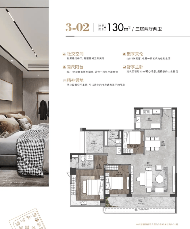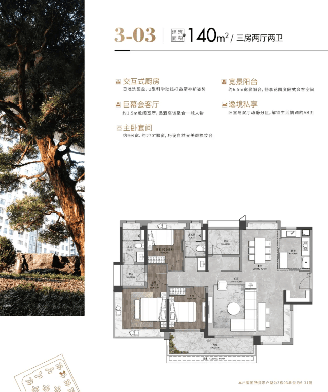 中海保利朗阅主推建面约98-182平方米的全南向三至四房户型,使用率高达95%以上。其中,177平方米的4房两厅三卫户型设计独梯独户,拥有IMAX尺度阳台和双主卧套房;182平方米的3房两厅三卫户型则配备入门隐藏式储物柜、LDK餐客厅一体化设计和超16米环绕式景观阳台,提供了奢华的生活体验。