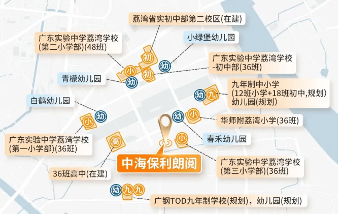 广钢新城教育资源丰富,一路之隔即为广东实验中学荔湾学校第三小学部。周边还有多所知名中小学,如省实一小、省实二小、华师附小等。项目自身配建了两所中学,其中一所已确定为广东省实验初中,预计于2025年竣工。整个板块将规划32所学校集群,涵盖从小学到高中的一站式教育服务。