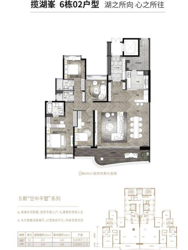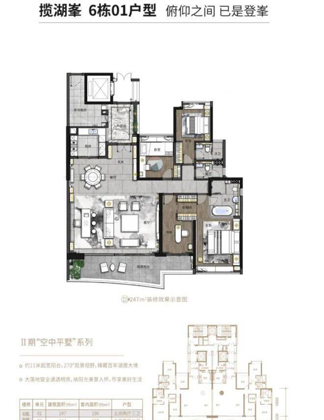 户型设计亮点满满。涵盖多种面积段和户型类型,满足不同家庭结构的需求。大平层户型多为南向一线望湖,采光和景观极佳。复式产品以 “双钥匙双入户” 设计为亮点,兼顾隐私与仪式感。空间设计注重尺度与功能融合,如 345㎡顶复和约 438㎡复式的独特空间布局,提升了居住的舒适度和品质感。虽然文中未明确提及得房率,但从整体设计来看,空间利用较为合理,居住舒适度较高。