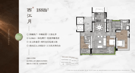 107㎡四房两厅两卫:总价约880万元起,四开间朝南,11.8米超大面宽,得房率高达115%。