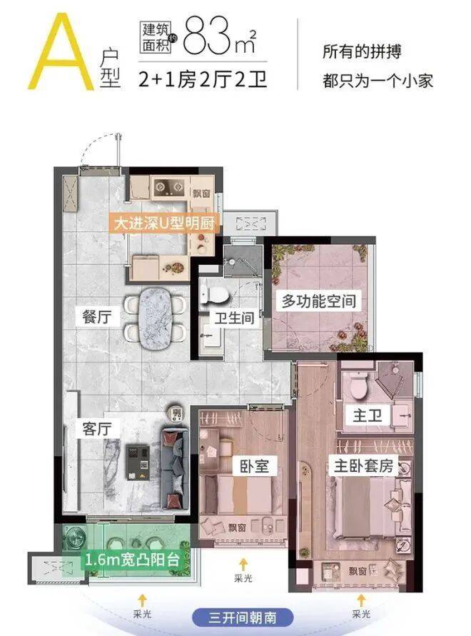 特点:“同样面积多一房”,适合二孩家庭或三代同堂,为每位家庭成员提供相对独立的空间。