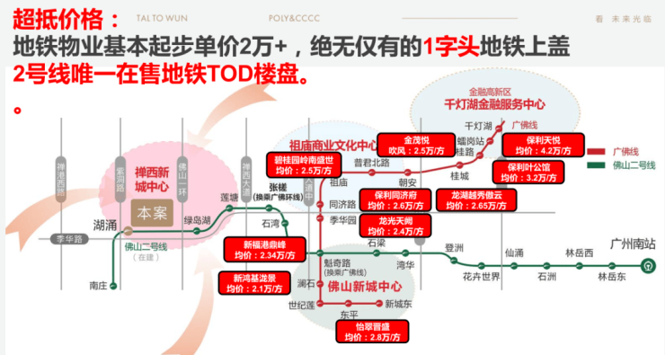 保利中交大都汇位于佛山市禅城区湖涌站上盖,占地超17万平方米,是佛山地铁2号线的重要节点之一。从这里出发,仅需30分钟即可到达广州南站,方便快捷地连接广佛两地。