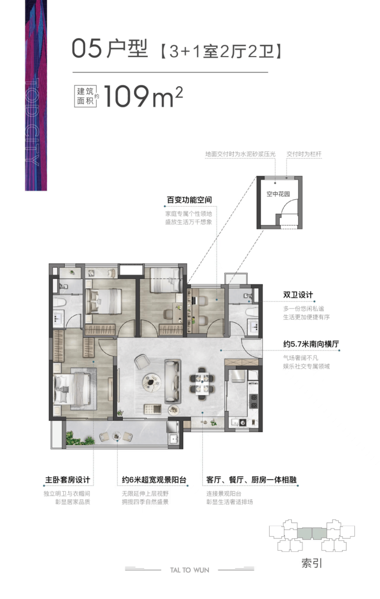 项目内设有2.5万平方米空中花园,借鉴新加坡垂直森林城市理念,打造了一个集亲子、休闲、运动、观赏、科普于一体的绿色空间。此外,社区还配备了游泳池、康体乐园、天空运动场等多样化的休闲设施,为业主提供了丰富的娱乐选项。
