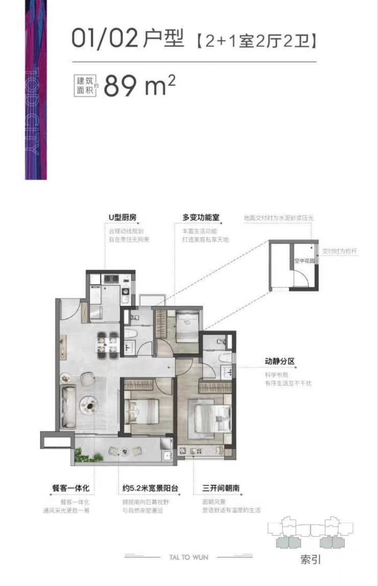 89㎡三房两厅两卫:南北通透,采光良好,提升居住体验。