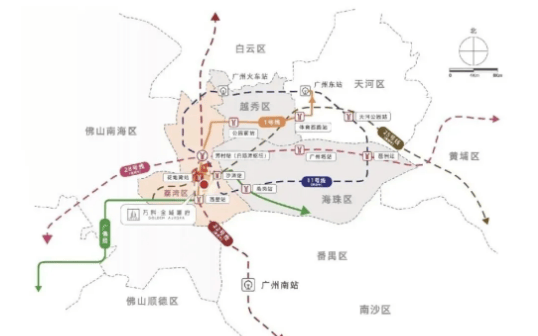 公路交通同样便捷,周边环绕花地大道、芳村大道、鹤洞路等城市主干道,通过珠江隧道、洲头咀隧道、鹤洞大桥等多条过江通道,可快速连接海珠、越秀、天河等区域,驾车至珠江新城约30分钟,轻松实现全城快速通达。无论是日常通勤、购物出行还是跨区游玩,都能享受高效便捷的交通体验。