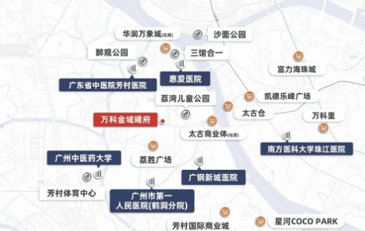 除自建学校外,项目周边教育资源同样丰富,3公里范围内分布有芳村小学、真光中学、培英中学、培真小学等多所优质学校。其中,真光中学和培英中学均为广州市重点中学,教学质量优异,历史底蕴深厚;芳村小学和培真小学则是区域内口碑良好的公办小学,能为孩子提供多样化的教育选择。从项目出发,驾车至真光中学约10分钟,步行至芳村小学约15分钟,便捷的距离让家长接送更省心。