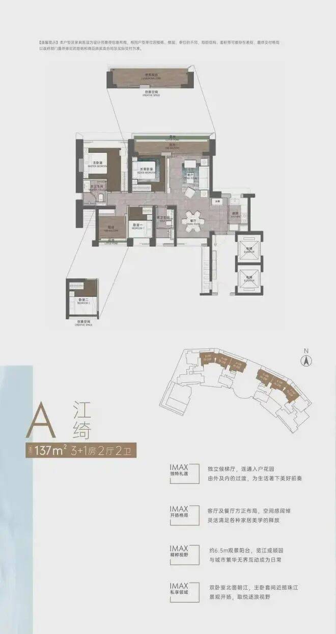 稀缺江景:通过微扇形布局,楼栋临江展开面更大,面江户型可享 180° 以上江景视野,观赏 CBD 两岸风光。广州 7 年 310 宗土地,江景地块仅 3%,琶洲 5 年来仅一块宅地,江景高层愈发难得。