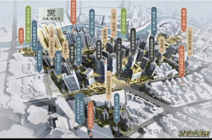 教育配套值得期待。诚汇新都内配建 5 所学校,其中一所 48 班中小学已动工,预计明年建成招生,目前正与西关广雅和真光等品牌教育集团接洽合作,有望成为其成员校(具体以政府文件公布为准)。此外,周边还有鸿图苑小学、真光中学和省实花地湾校区等优质标杆学校,为孩子提供了良好的教育环境。