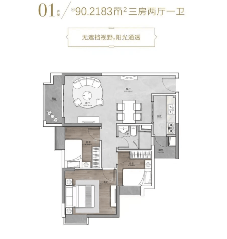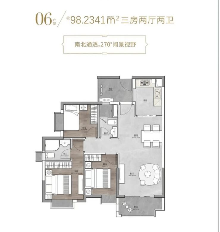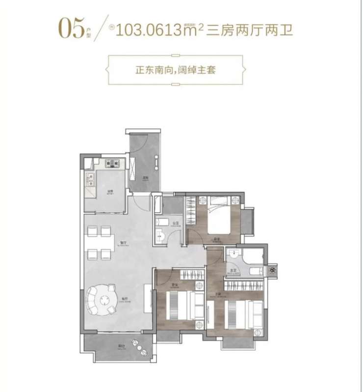 三居室103㎡,空间宽敞,适合三代同堂居住。