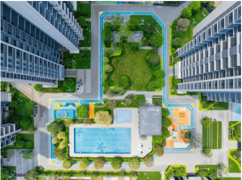 项目自身配备了一个约1.4万㎡的公园式开放商业街,同时,约5km内四大商圈环绕,包括万豪酒店、中海寰宇城商业综合体(在建)、万达广场等,生活娱乐两不误。