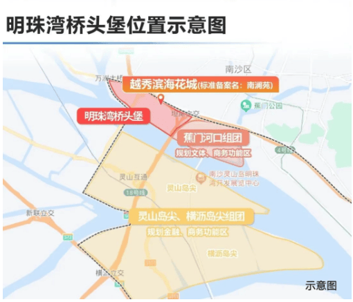 项目位于明珠湾板块,紧邻行政中心、商务中心及交通要道三大发展引擎,是南沙的“城市会客厅”。尽管严格按地段划分属于亭角板块,但其地理位置优越,距离江边直线不到500米,高层住户可以享受到极佳的观江体验。