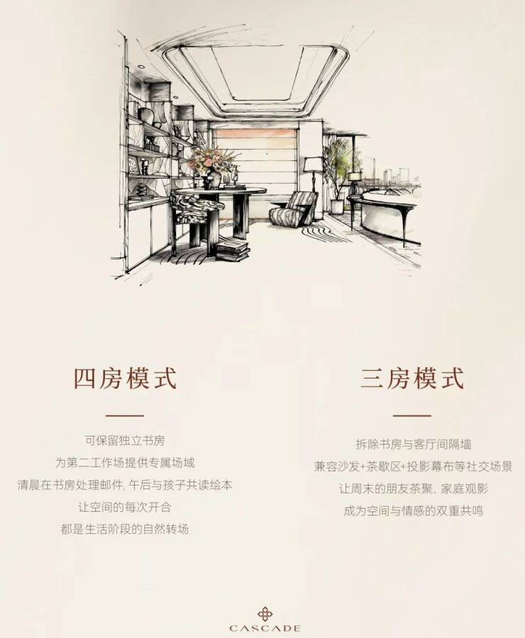 中海深耕城市人居数十载,以三百多万业主家庭的真实居住沉淀为根基,读懂了不同家庭、不同人生阶段的居住痛点与理想向往;同时深度锚定二百二十万加中国高知圈层的生活品味、精神追求与行为习惯,以大数据与实地洞察,描摹出当代高阶人群的理想生活图景。中海广府萬宸的柔性定制,正是把空间还给生活。户型可通过墙体拆除与空间重组打破固定格局,结合预埋管线与天花布线的工程保障,三房与四房自由切换。书房既可安静独处,也能打开边界,融入社交与欢聚场景,让家在不同人生阶段都有最适配的模样,真正实现空间随人而变、随生活而生长。