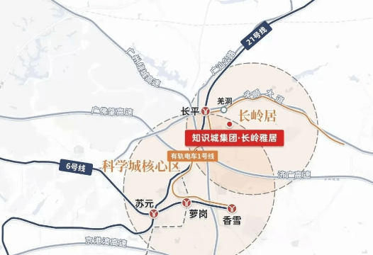 长岭雅居位于黄埔科学城CBD的后花园,距离地铁21号线长平站步行约2.2公里,虽稍有不便但可通过其他交通方式弥补。自驾出行便捷,能够快速到达天河等核心区域。