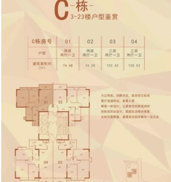 作为 2021 年 12 月已精装交付的现房,项目最大优势在于 “所见即所得”。由广东体星房地产开发打造的 75-110㎡二三房产品,得房率高达 85-87%,远超同区域多数项目。目前在售的 B-1 栋(18 层,2 梯 4 户)涵盖 87、98、110 平户型,C-1 栋(24 层,2 梯 4 户)推出 75、102、105 平户型,无论是 75 平刚需两房,还是 110 平改善三房,均能满足不同家庭结构需求,精装交付标准更省去二次装修的时间与成本。