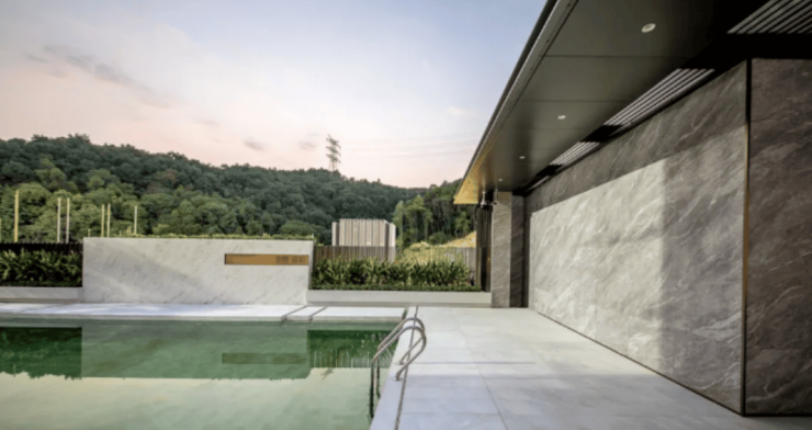 金沙瑞府以低容积率约1.8打造湖山纯墅区,整体占地约4.1万平方米,建筑面积约13.5万平方米。项目依山傍水,三面环山,面向凤凰湖,形成独特的低密生态空间。园区内部采用台地升阶叠院设计,建筑布局错落有致,视野无遮挡。项目配套91万平方米浔峰山公园,打造可参与、可体验、可互动的山水景观体系,包括无边泳池、云台揽境、风语雅园等,形成生活与自然高度融合的社区环境,让每位住户都能在湖山之间找到专属的生活体验。