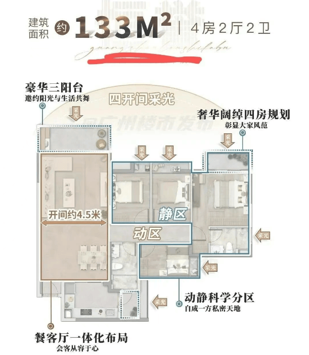 6. 户型设计兼顾实用与舒适:95-133㎡多元选择适配不同家庭