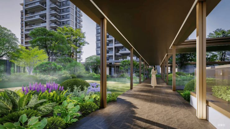 项目容积率仅1.58,采用纯板式小高层设计,楼间距超百米,确保每一户都能享受无遮挡的阳光与视野。社区内部打造“一轴一环八重境”园林体系,绿化率超35%,四季有花、步步皆景,宛如城市中的私家生态秘境。