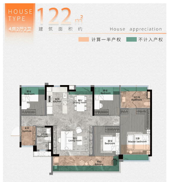六、户型设计:二期超 120% 得房率,大面宽瞰景户型