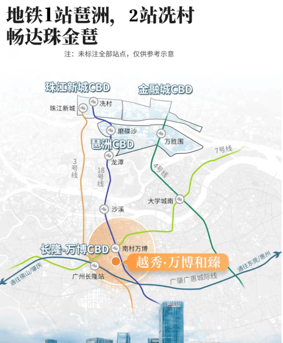 答:距 7/18 号线南村万博站约 1.3 公里,骑行 5 分钟可达,18 号线一站到珠江新城(约 20 分钟),自驾经番禺大道 30 分钟内可达,通勤便捷度高。