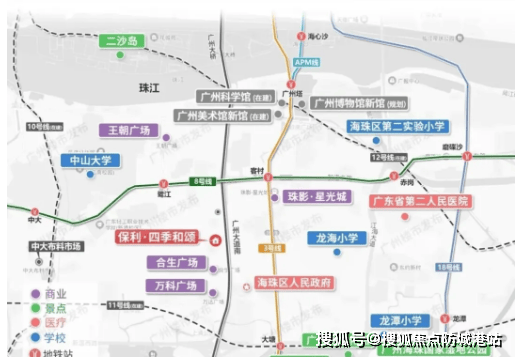 项目地处广州海珠新中轴线核心位置,左拥海珠成熟老城(享烟火气与成熟配套),右抱琶洲数字经济区(承接产业发展红利),地理位置稀缺,是市中心少有的 “成熟配套 + 未来潜力” 双优板块。交通配套 “自驾便捷 + 多地铁覆盖”,自驾出门即广州大道南,到珠江新城仅 5 公里、到琶洲仅 11 公里,非高峰时段 20 分钟内可达两大核心商圈;地铁方面,周边有 3/8/10/11 号线 4 条地铁交汇,距离 8 号线客村站、鹭江站步行约 1.5 公里(可通过骑行或短途公交接驳),1 站可达广州塔、2 站到珠江新城、3 站至琶洲西区,无论是自驾还是公共交通,均能满足主城通勤需求,尤其适合自驾出行人群。