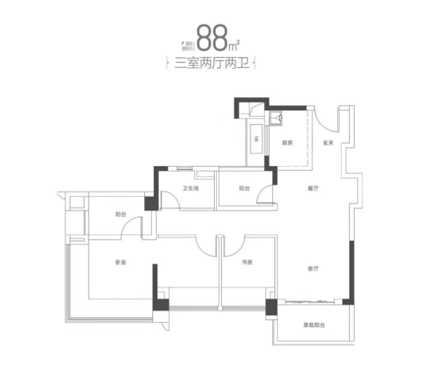88–113㎡全南新规三至四房,实用率超100%细节见匠心