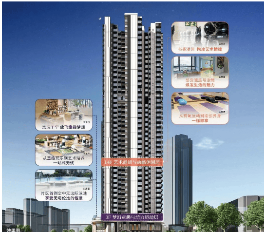 尽管新福港鼎峰江畔是一个单体楼项目,没有传统意义上的小区花园,但开发商通过巧妙的设计弥补了这一点。双架空层被打造成各种主题空间,包括空中泳池、艺术书吧、童话乐园等,丰富了居民的业余生活。此外,项目对面就是开发区医院,附近还有成熟的商业设施和生活服务,确保了居民日常生活的需求得到满足。