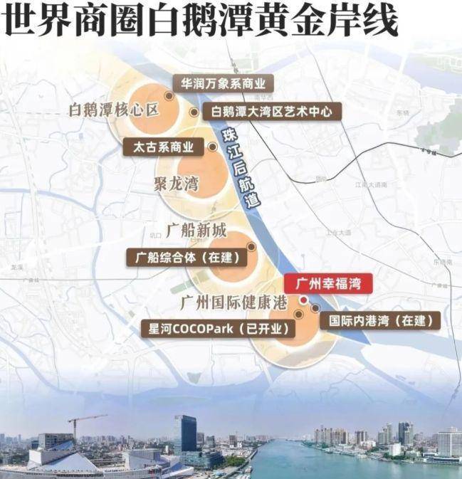 商业配套极为成熟,项目背靠千亿级大健康产业平台 —— 广州国际健康港,体量约 200 万㎡,总投资超 300 亿元,分四期开发,涵盖广州市区内唯一港湾游艇码头、产业综合体、购物中心、展览中心、写字楼和五星级港湾酒店等高端配套。一期 90 万㎡的健康方舟已投入运营,其中 12 万㎡的健康港星河 COCOPark 也已开业,引进众多特色餐饮店、星巴克、奈雪的茶、超市、影院等知名购物店及零售品牌,满足业主日常购物、餐饮、娱乐等多样化需求。周边内港湾码头滨水商业街、广钢花湾天地、广船综合体等商业资源丰富,进一步提升商业氛围。医疗方面,广东省中医院芳村分院、广州中医药大学第三附属医院、广钢新城医院、珠江医院、广医二院等医疗机构环绕,为家人健康保驾护航。休闲配套方面,项目自带 3000㎡星环会所,包含恒温泳池、健身房、总裁会客厅、棋牌室、私宴厅等,为业主提供高端休闲娱乐场所。项目处于三江环抱之地,业主下楼即可亲近江水,享受 2.4km 江岸线美景,周边江岸休闲公园、滨江文化公园、广钢中央公园环绕,打造一江三园的绿养生活体验。