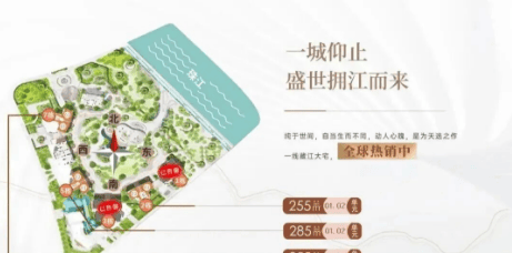 答:项目采用香槟金水波纹立面设计,与珠江水景相映成辉,搭配弧形落地玻璃,实现IMAX级观景体验,户户均可饱览一线江景。