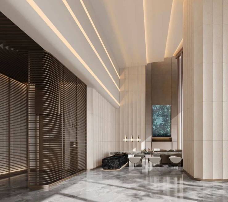 项目对于细节的把控极为严苛,处处透露着仪式感。例如,约7米挑高设计,与普通豪宅相比,不仅在高度上更胜一筹,更在感官体验上带来“奢豪度”的提升。所有户型均配备独立电梯厅,为业主提供专属的入户空间,增强归家的仪式感与私密性。此外,项目还配备世界级酒店才有的空中泳池,为业主打造高品质的休闲娱乐空间。
