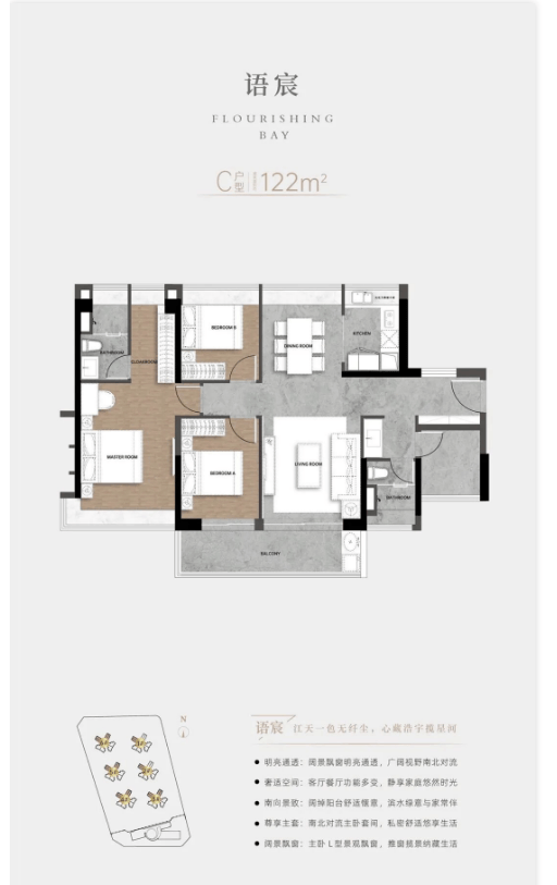 户型设计强调实用与朝向统一。建面约80㎡A户型为全岛最低门槛南向三房,布局紧凑高效;95㎡B户型实现LDK一体化,阳台进深充足;122㎡C户型与140㎡D户型则升级为四房,主卧配L型飘窗、独立卫浴,部分高区单位享江景视野。全系南向、南北通透(部分)、U型厨房、干湿分离卫生间成标配,精装细节对标国企标准。尽管临主干道楼栋需注意噪音,且高容积率可能影响低层采光,但综合“170万起+地铁500米+名校600米+国企背书”的稀缺组合,海语天悦湾在横沥岛刚需市场中展现出突出的性价比与上车价值。