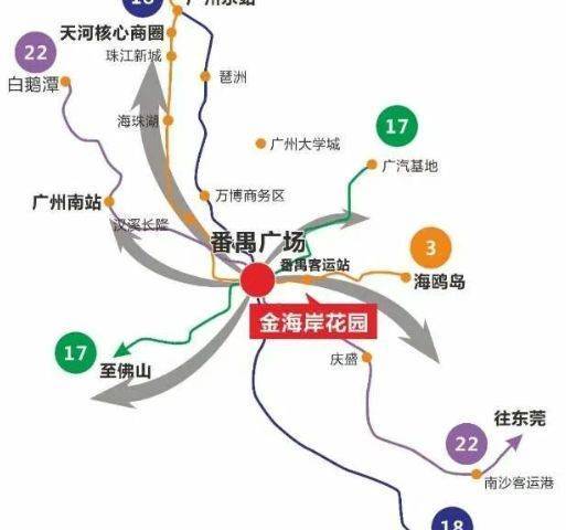 湾区战略要地:番禺地处大湾区 A 字型地理位置顶端,拥有湾区枢纽门户优势。金海岸花园雄踞城市新轴心,占位 “下一个珠江新城” 的价值中心,尽享湾区发展红利,具备巨大的发展潜力。