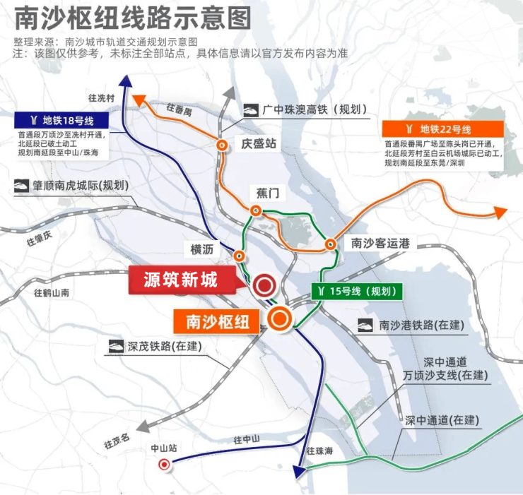 源筑新城紧邻南沙站,并且靠近地铁18号线,提供了便捷的交通网络。无论是前往广州市中心还是周边城市,都能轻松抵达。此外,规划中的多条快速道路将进一步提升出行的便利性。