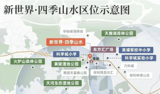 新世界四季山水位于天河智慧城和科学城交汇处,这两个科技中心聚集了大量的高知人群,形成了强大的产业支撑。同时,项目周边的交通、教育等配套设施齐全,能够满足高端改善需求。此外,黄陂板块强调居住功能,适合自住型购房者的长期居住。