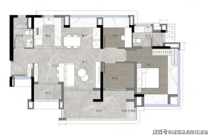 79㎡三房两厅两卫:采用动静分区设计,使用率超100%,适合刚需购房者。