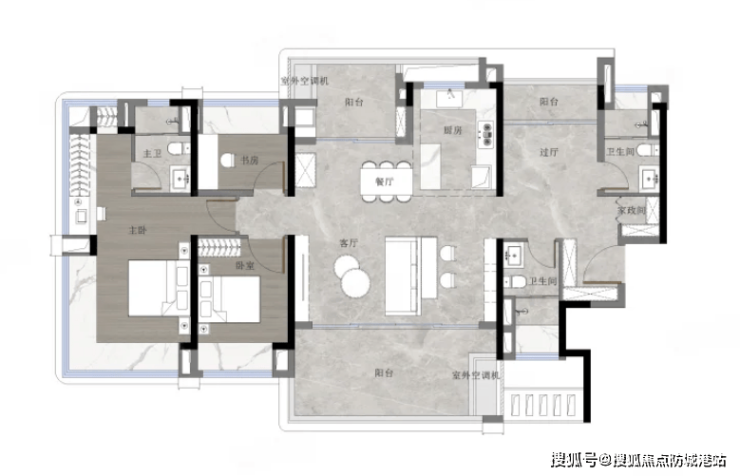 142㎡四房:搭配双开间景观阳台,适合改善型购房者。