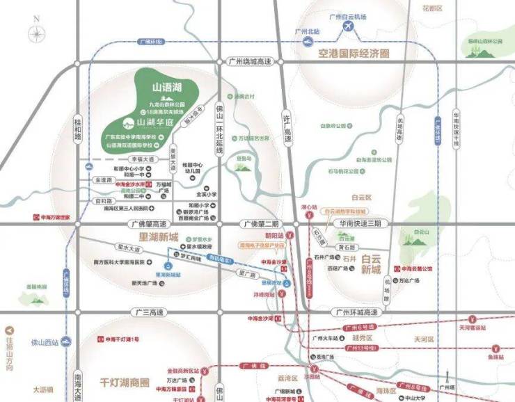 通往白云机场:与空港经济圈和白云机场直线距离14公里,沿佛山一环往北经广州绕城高速可达。