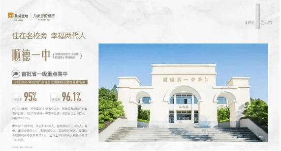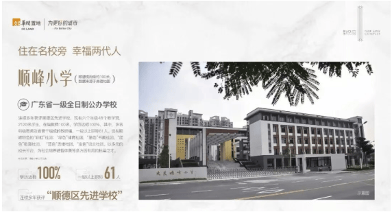 周边学校: 顺德区机关幼儿园、顺峰幼儿园、顺峰小学、顺峰初级中学、大良实验小学、顺德本真未来小学、李兆基中学等名校环绕,满足孩子从3岁到18岁的全龄段优质教育需求。