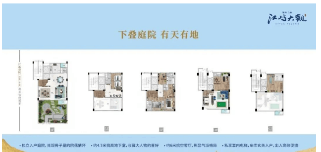 由连续15年位列中国房地产百强的众安集团开发,国科·众安·江屿大观财务稳健,品质卓越。项目主打建面约158-201㎡商墅与39-49㎡公寓两类产品,满足不同客户的需求。商墅拥有约8.5米奢阔会客厅,独立入户大院、挑高地下室、顶层270°景观露台,使用率高达260%;公寓则以约4.5米层高,双层使用空间,低总价吸引众多购房者。