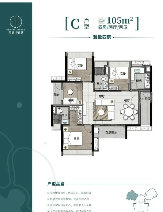 居住场景:适合二胎家庭、终极改善,四房设计,三代同堂无压力,双阳台、双卫,居住舒适度极高,一步到位不用换房。