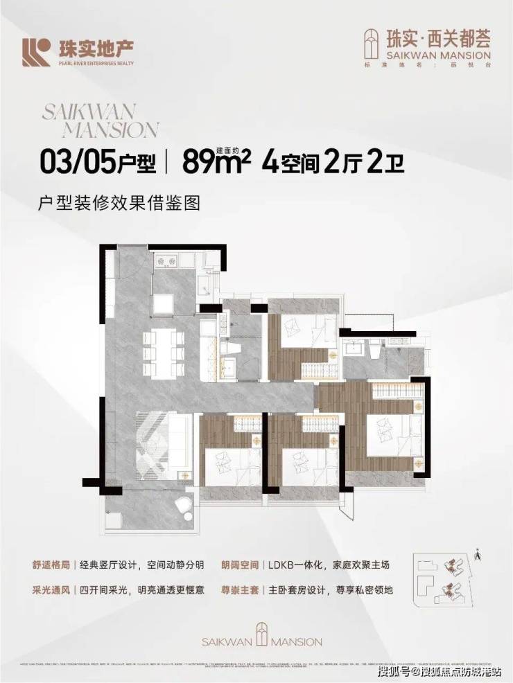 72-152㎡三至五房,使用率超100%(实测数据),89㎡做到四房双卫,空间媲美120㎡户型。
